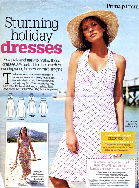 Prima Sewing Pattern Dress Halter Neck 10 20 August 2010 Sundress 2 Lengths Easy 4 24 Picclick Uk